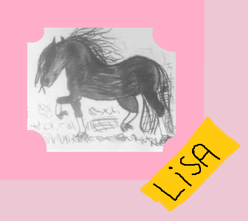 Hey, deze tekening heb ik gemaakt van een Shetlandpony in een weiland en die wil ik graag aan jullie laten zien! Ik weet dat hij een beetje mislukt is maar ik ben nog maar net begonnen met tekenen en ik ben er daarom erg trots op! Groetes Lisa!